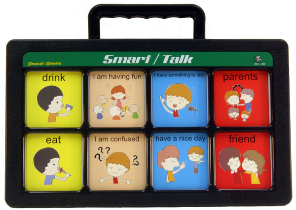 Smart/TalkThe Smart/Talk is the newest addition to our 8 message, multi-level AAC device designed to aid communication through direct selection. Using Real-Voice technology, the Smart Series provides speech playback at a high audio quality. It has the same Time-Lock Technology along with many other distinct features such as its light-weight and portability, etc. This new Smart Series features: Smart Overlay System Interchangeable FLASH card Slimmer housing design Carrying handle The Smart Series is manufactured to the highest commercial standards to provide many years of reliable performance. |