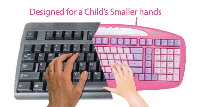 Little Princess KeyboardChild size: 2/3 size of a normal keyboardMini Keyboard DesignThe Mini Kids Keyboard is 2/3 size of a normal keyboard. The distance between each individual keycap was specially designed not only for kids small hands as well as for smaller hands users. System Requirements