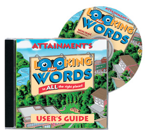 Looking for Words Explore community, home and school Community exploration program combines reasoning skills with vocabulary building. Excellent for reading enrichment. Engaging graphics, interesting animation and clear speech help teach hundreds of words in context. Features “explore,” “list,” and “picture print” options. In “explore,” students freely move to different locations, 24 in all, learning new words as they go. Select any object and it identifies itself. In “list” option, students search for specific words on their list. Where would you find a basketball, broom or mailbox? How about a fire hydrant, fire truck or toaster? Use the “picture print” option to create student activities or illustrated vocabulary booklets. New feature lets teachers select specific words on student lists. Scores are saved to track skill development. Win 98/ME/2000/XP Mac OS 8.6-9.2, OSX Classic, Native |